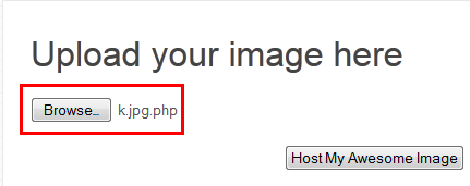 It does not allow us to upload a PHP file. We tried some different techniques to bypass this restriction. Finally, we added a double file extension like this: "k.jpg.php" and tried to upload it.