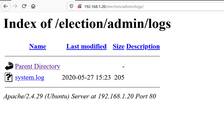 We checked the logs folder which was identified by the dirb and found that directory listing was enabled which can be seen in the following screenshot.