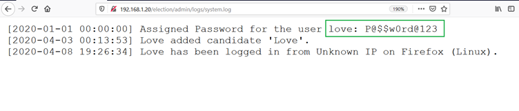 Until now we have completed the initial enumeration and got a username and password in the logs file. We also identified three different ways to log in. The first is SSH port, the second is phpMyAdmin and the third is the election admin login page. In the next step, we will use try to use these credentials for getting access.