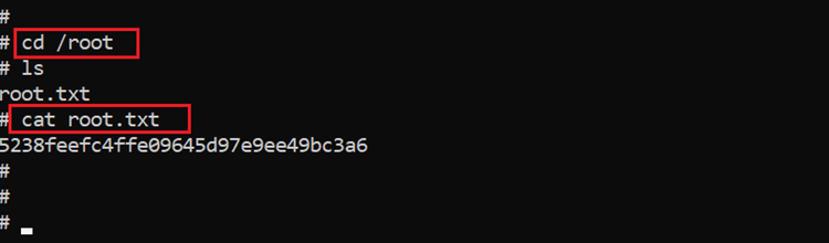 Now we have the root access, so let’s read the root flag file, which can be seen in the following screenshot.