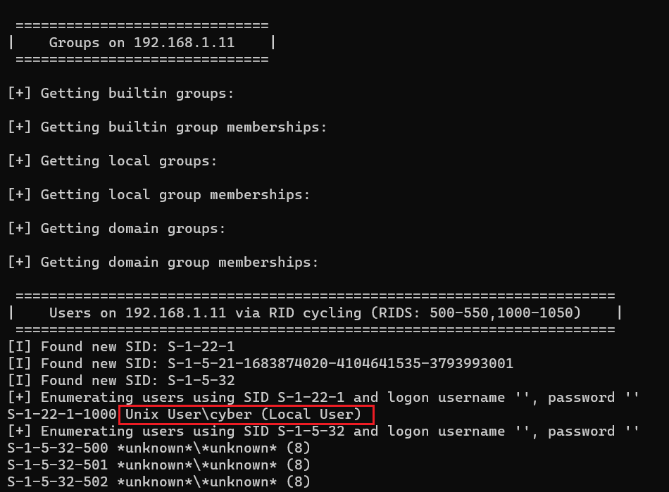 Command used: << enum4linux -a 192.168.1.11 >>