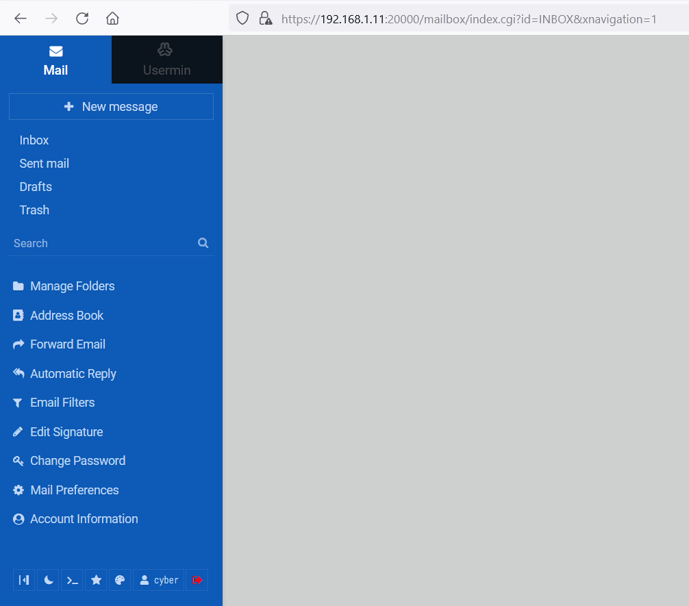 So now know the one username and password, and we can either try to login to the web portal or through the SSH port. At first, we tried our luck with the SSH Login, which could not work. Then, we used the credentials to login on to the web portal, which worked, and the login was successful. The 'Usermin' application admin dashboard can be seen in the below screenshot.