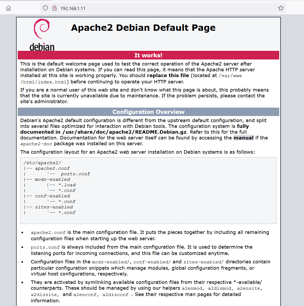 As shown in the above screenshot, we got the default apache page when we tried to access the IP address on the browser. This means that the HTTP service is enabled on the apache server. However, the webroot might be different, so we need to identify the correct path behind the port to access the web application.