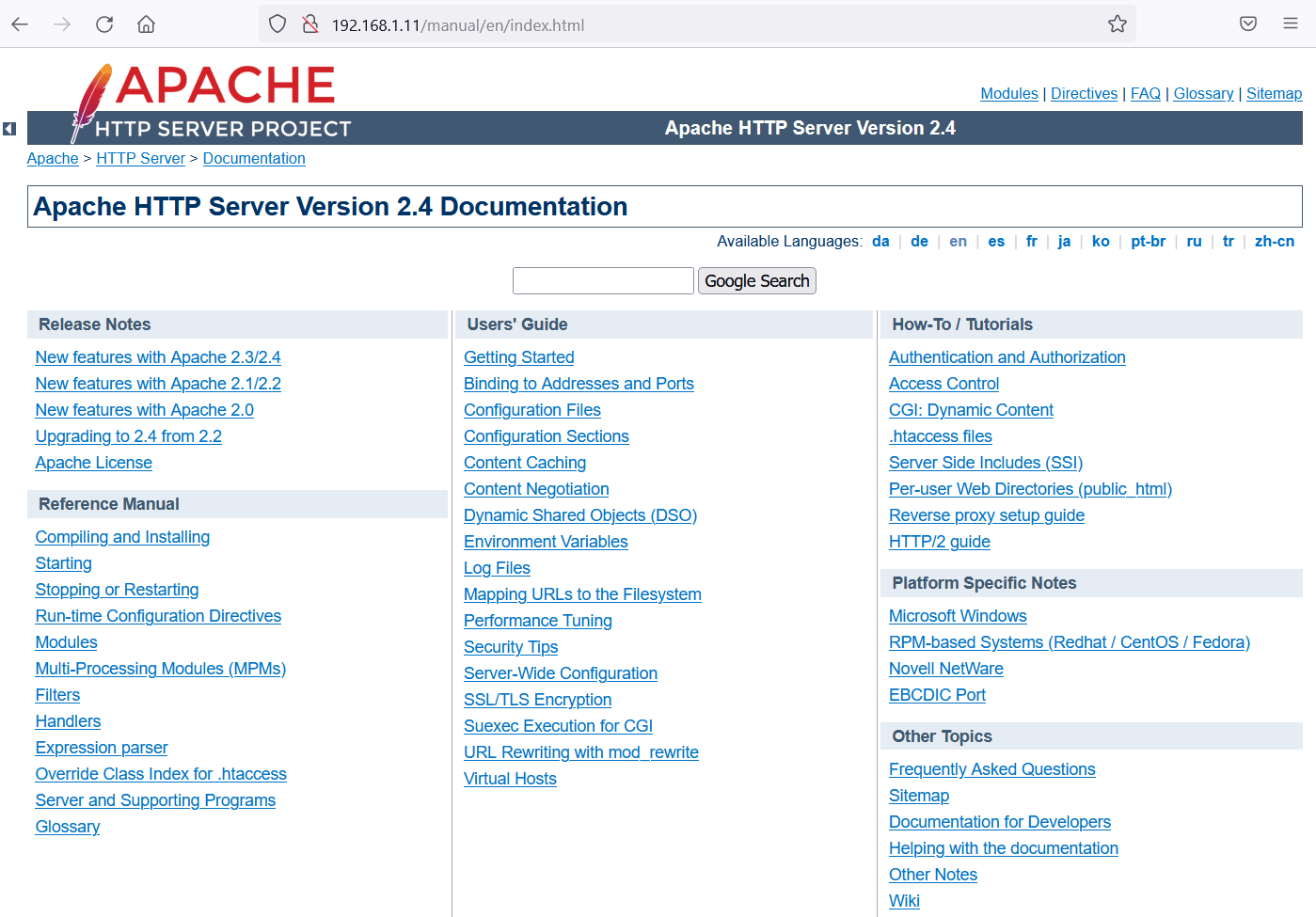 We identified a directory on the target application with the help of a 'Dirb' scan. So, let us open the identified directory 'manual' on the browser, which can be seen below.