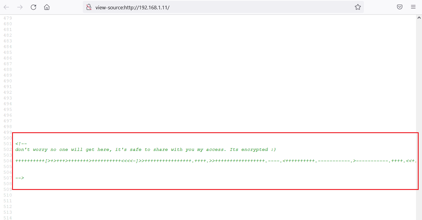 This is an apache HTTP server project default website running through the identified folder. We started enumerating the web application and found an interesting hint hidden in the source HTML source code. The hint can be seen highlighted in the following screenshot.