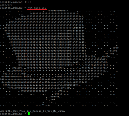 We started exploring the target machine as user ‘iecx64’. When we checked the contents of the current directory using the ‘ls’ command, we found the first flag of the challenge, which can be seen below.