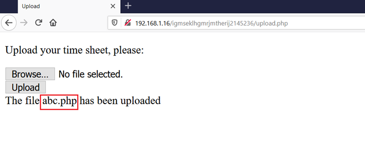 We saved this file as abc.php and uploaded it into the target machine. Luckily, all the extension was allowed so we were able to upload the command execution shell on the target machine which can be seen in the following screenshot.