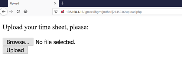 The upload folder indicates there might be upload functionality on the application and all the files which are being uploaded will be stored in the upload folder. We’ll manually check some default file names with an upload, in which upload.php works. And it was having the file upload functionally, which can be seen in the following screenshot.