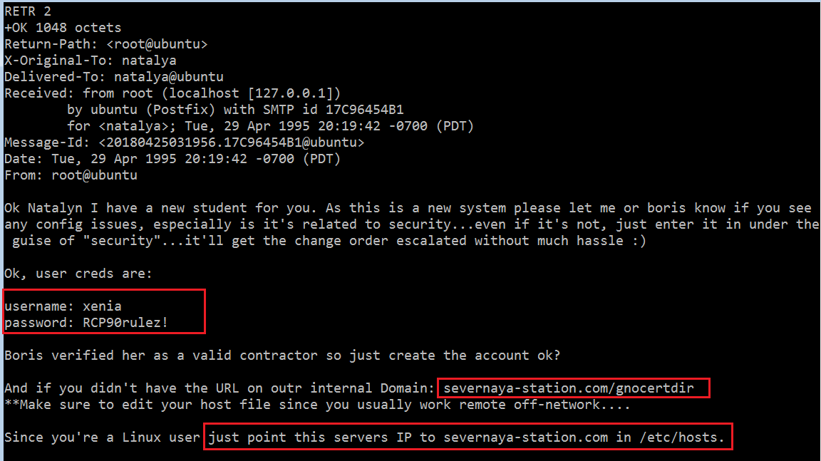 In the previous article, we learned to exploit the POP service on the target machine and log in as different users. We also read the emails of different users on the server through the POP3 port. During this, we found a username and password from a user’s email, and there were instructions to make some changes in the etc/hosts file. The email can be seen in the following screenshot.
