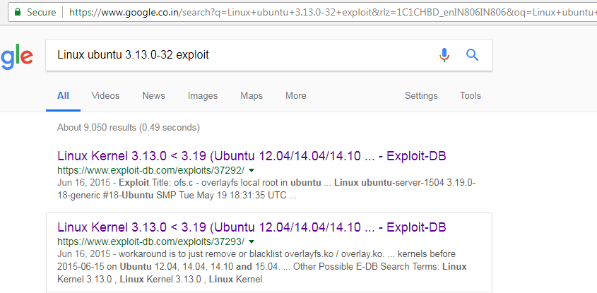 We can see in the above screenshot that we have the operating system and kernel version number. So I searched on Google for a local exploit and found several options.