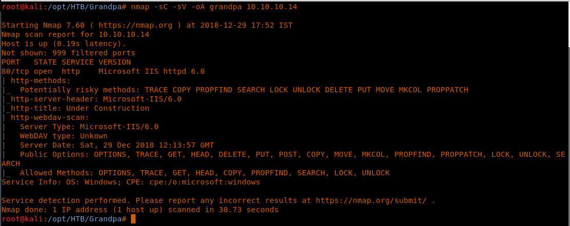 <<nmap -sC -sV -oA grandpa 10.10.10.14>>