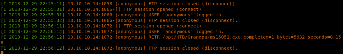 20. From above, directory “wmpub” is writable. Before we run the ftp command to fetch the binary, we need to host the binary from our attacking machine via ftp service.
