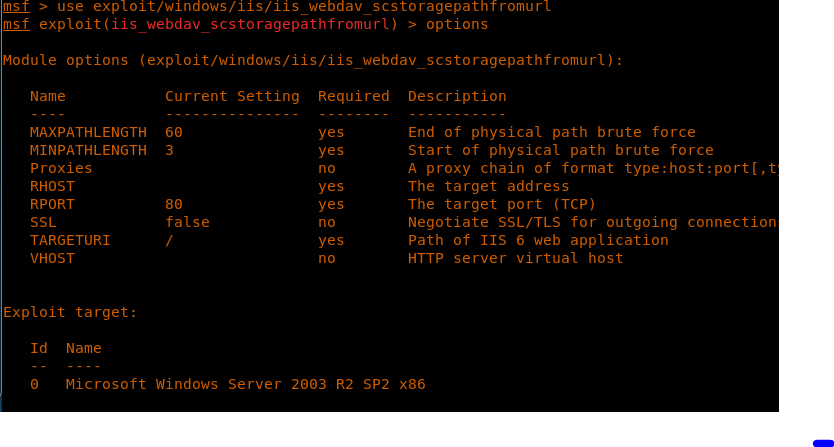 << use exploit/windows/iis/iis_webdav_scstoragepathfromurl>>