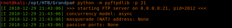 << python -m pyftpdlib -p 21>>