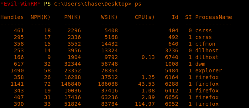 This was an interesting machine and really got easy with evil-winrm. It’s important to see what processes are running and whether they should be running.