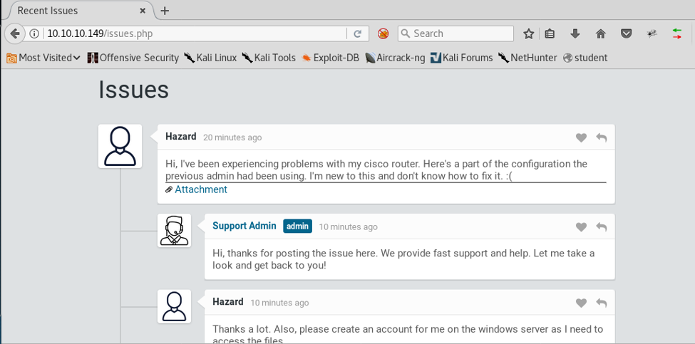 7. Looking into guest login reveals the following chat page. This shows that user “Hazard” has attached a file.