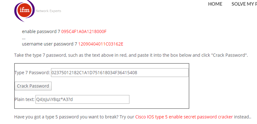 9. These Cisco Type 7s can be easily decrypted using an online utility, as shown below.