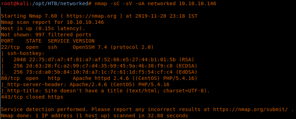 <<nmap -sC -sV -oA Networked 10.10.10.146>>