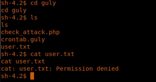 14. We try enumerating to collect user.txt, but it looks like the permission is denied.