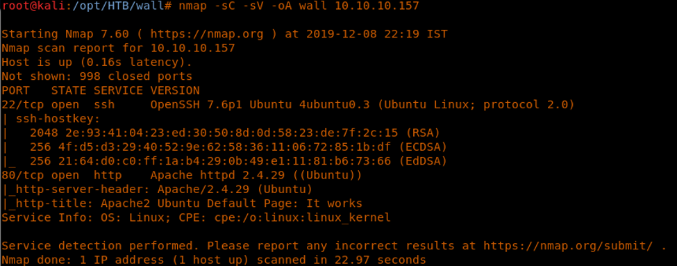<<nmap -sC -sV -oA Wall 10.10.10.157>>