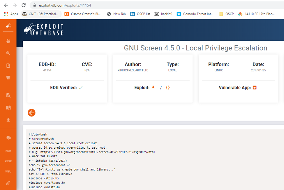 28. Checking the SUID bit reveals that the screen utility has that set the version is vulnerable to local privilege escalation.