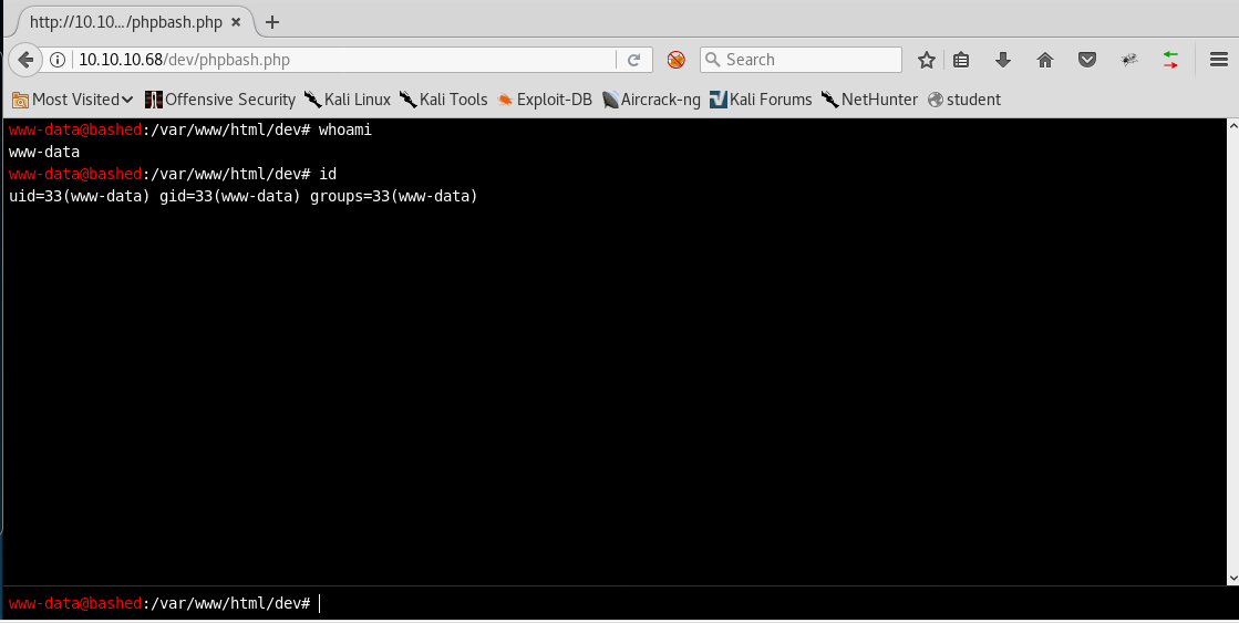 9. Clicking phpbash.php gives us an interactive Web shell, as we can see below.