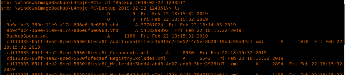 6. We can see that the shares are listed. Upon their individual enumeration, we can see that we have WindowsImageBackup.