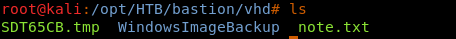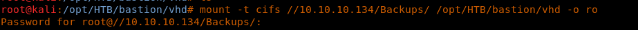 <<mount -t cifs //10.10.10.134/Backups/ /opt/HTB/bastion/vhd -o ro>>
