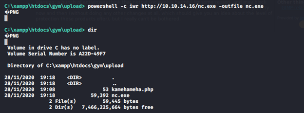 - Let’s upload nc or a PowerShell one-liner to the machine and get a more stable shell back.