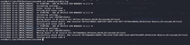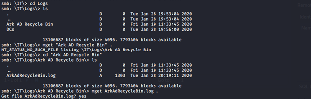 - Ark AD Recycle Bin: Continuing enumeration, we also find the ArkAdRecycleBin.log file, which has shown some username such as ArkSvc and some group information.