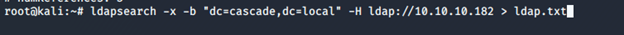 Command used: nmap -sC -sV -oA Cascade 10.10.10.182 - Since so many ports are available and looking at them from a usage perspective, this seems to be a domain controller.