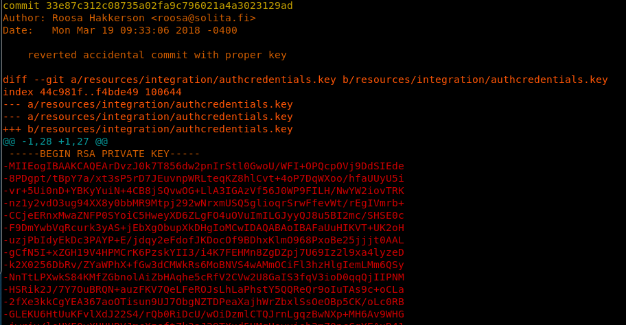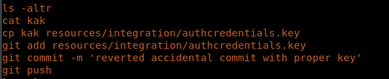 18. When we have git involved, it’s always best to see the history. Looking into the history of a command being run on the system, it looks like there was a mention of replacing this key. Let’s try to find out the original key.