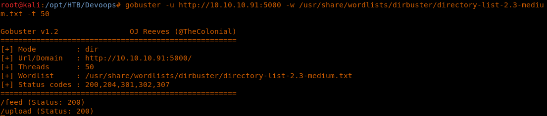 <<gobuster -u http://10.10.10.91:5000 -w /usr/share/wordlists/dirbuster/directory-list-2.3-medium.txt -t 50>>