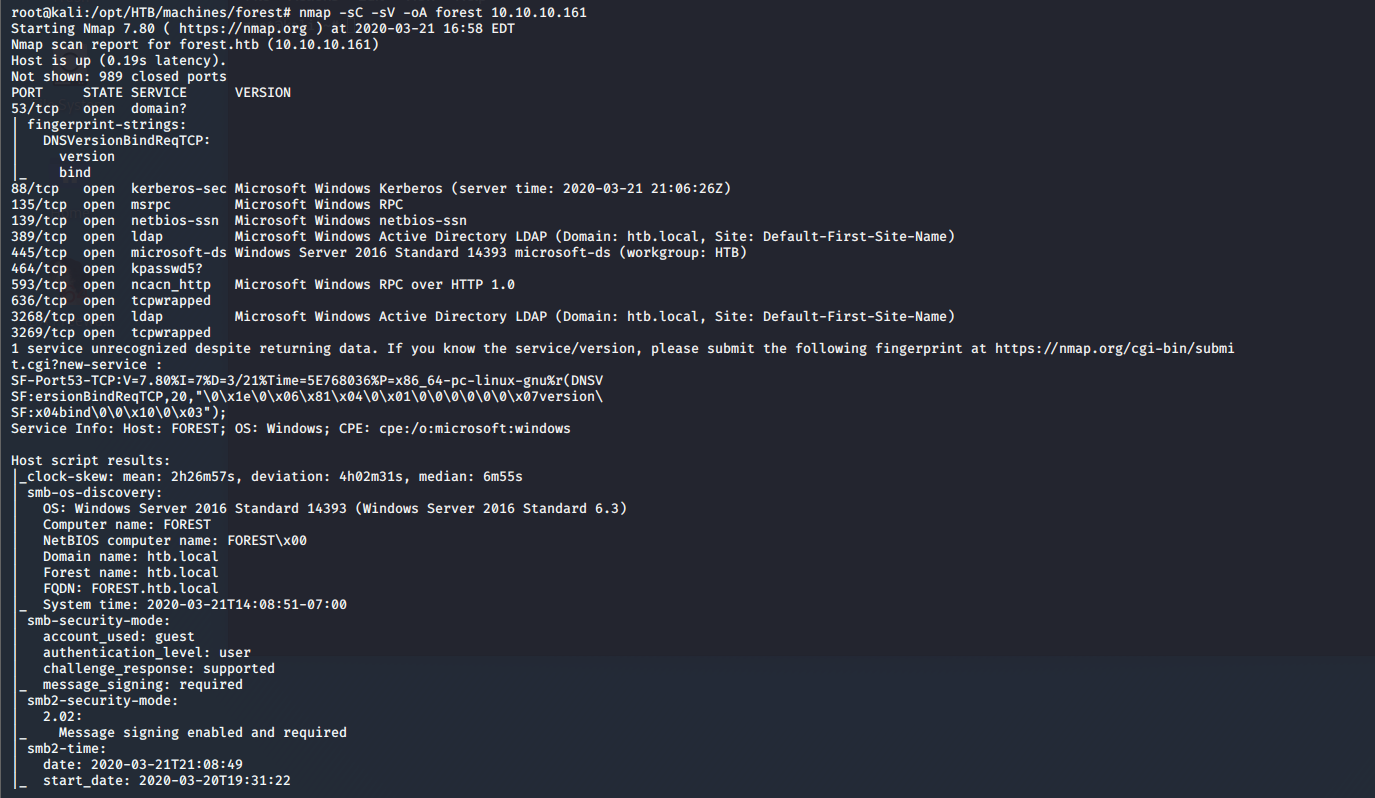 <<nmap -sC -sV -oA Forest 10.10.10.161>>