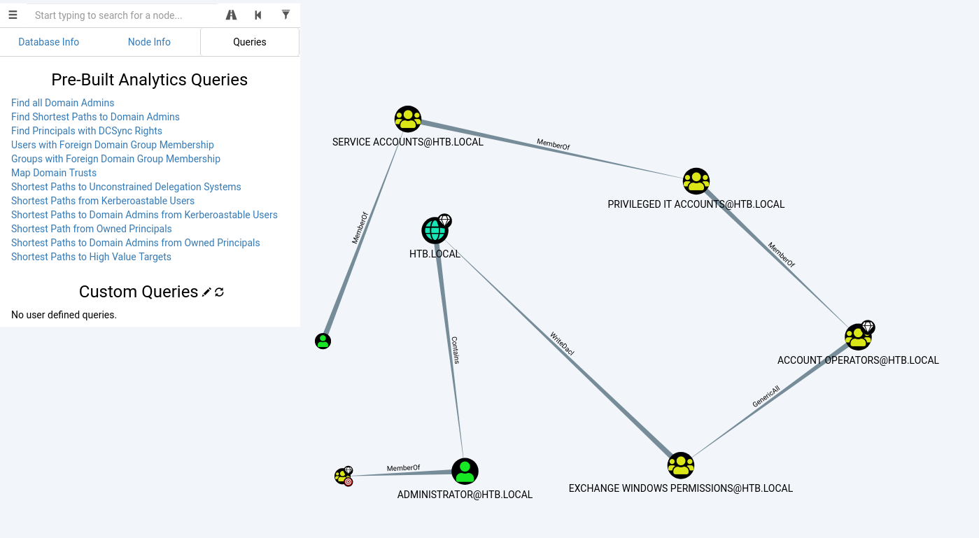 - As we can see, the group “Exchange Windows Permissions” is on default behavior and is the weak link. We will add ourselves to the “Exchange Windows Permissions” as per GenericAll rights and group inheritance.