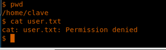 - Let’s grab the user.txt. Unfortunately, we cannot, because we need to elevate the creds.