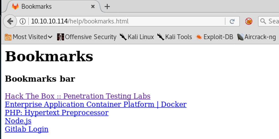 - Looking into the bookmark.html and clicking Gitlab login, nothing happened.