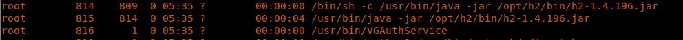 19. As is stated in the series, one of the checks to perform is to see what processes are running as root. Here we have the H2 service running as root. This service was also discovered during the initial Nmap scan. We also get the service version as well.