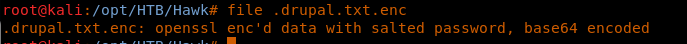 7. Enumerating the directory contents reveals a .drupal.txt.enc file.