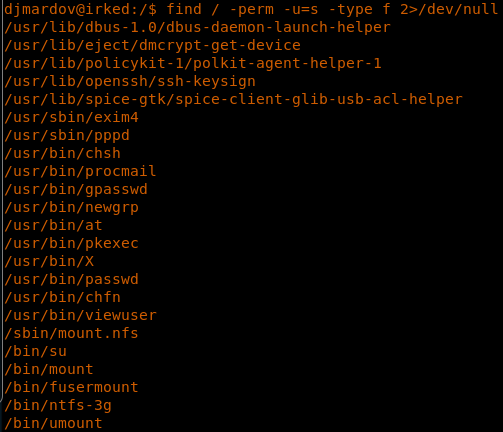 <<find / -perm -u=s -type f 2>/dev/null>>