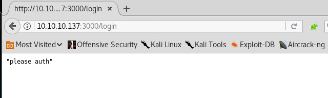 9. Moving to port 3000, we got a message about a missing Auth Token.