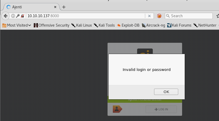 10. And finally, port 8000 hosts an Ajenti service. We tried the default username/password, but it did not work.