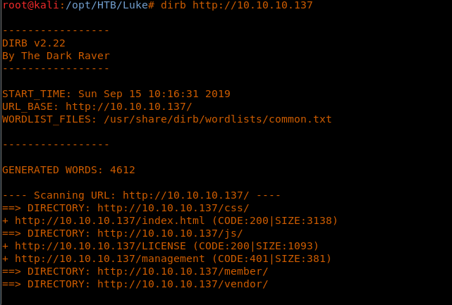 <<gobuster -u http://10.10.10.137 -w /usr/share/wordlists/dirbuster/directory-list-2.3-medium.txt -t 30>>