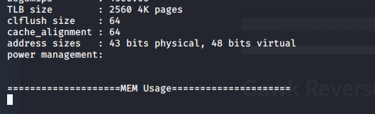 - We ran the binary again and as expected, it hangs while executing free binary because it is busy in giving us the shell back.