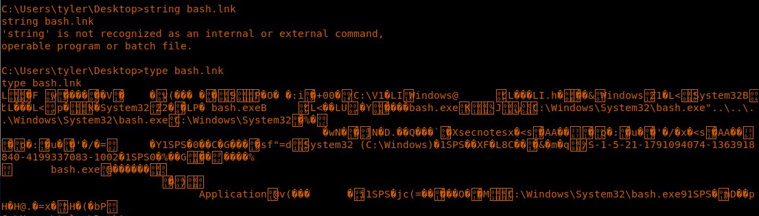 15. In the same directory there is a bash.link file, which is interesting as it hosts bash.exe.