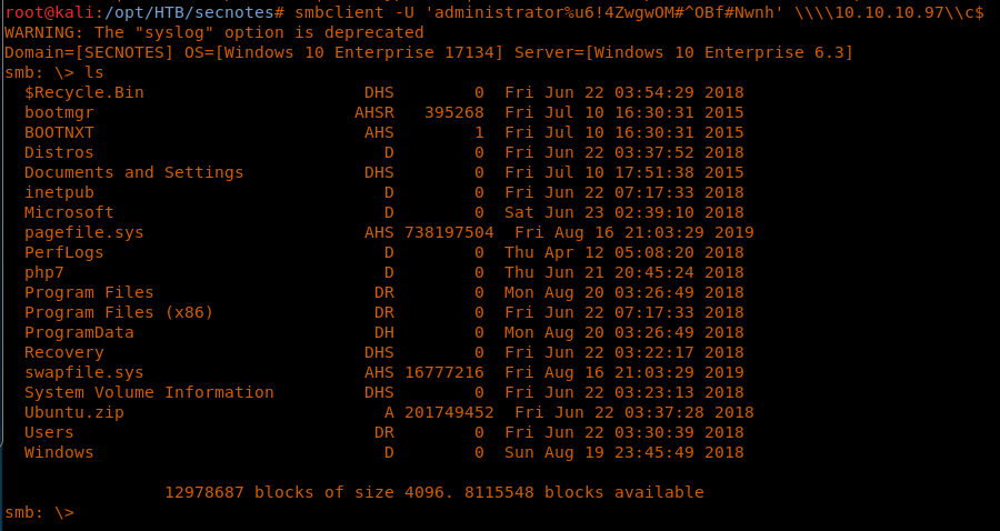 <<smbclient -U ‘administrator’ 10.10.10.97c$>>