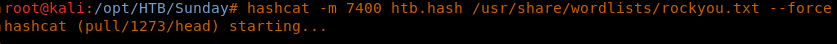 Hashcat -m 7400 htb.hash /usr/share/wordlists/rockyou.txt --force