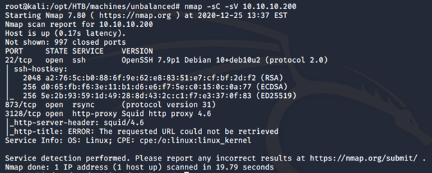 - As usual, let’s start with the Nmap scan to gather more information about the services running on this machine. [CLICK IMAGES TO ENLARGE] nmap -sC -sV -oA Unbalanced 10.10.10.200